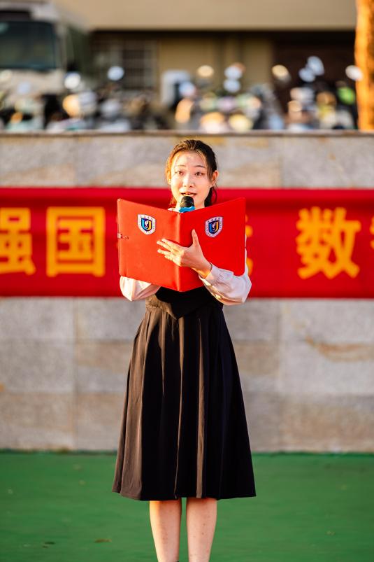 仪式第二项,国旗下新生代表发言。她结合自身入学感悟,回顾祖国 76 年来的非凡历程,号召同学们以青春之力扛起时代责任,用学识为自贸港建设添砖加瓦,真挚话语引发在场师生共鸣。