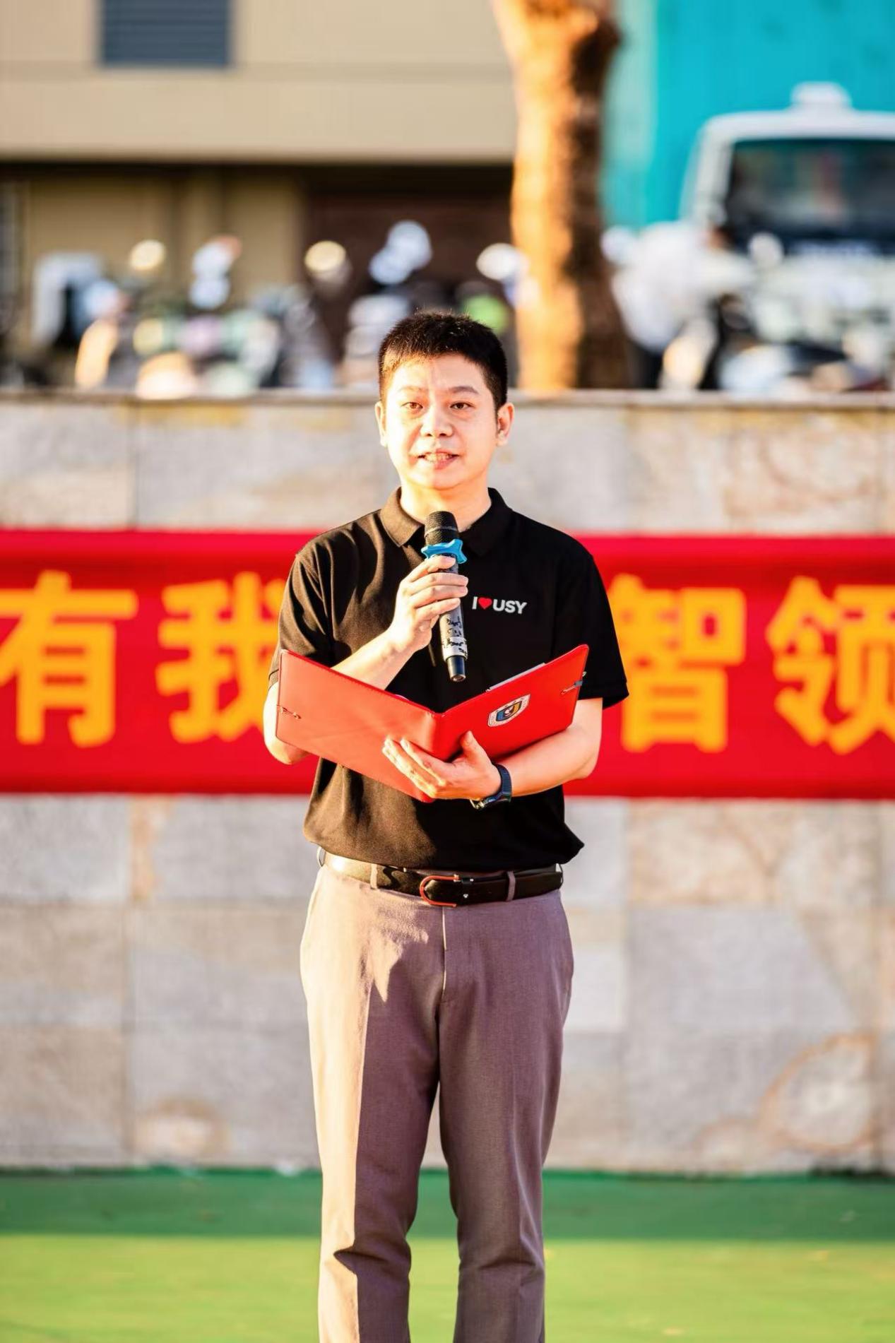 仪式第三项,校团委书记、学生处长孙凡老师发表讲话。他首先向师生致以节日祝福,动情回顾九三阅兵的震撼场景:“钢铁洪流彰显大国底气,整齐方阵凝聚民族精神,这场阅兵是最好的精神教科书,让我们深切感受祖国的强大与希望。” 谈及学校发展,他提到,三亚学院正以人工智能为核心驱动力,推进智慧校园、绿色校园、人文校园建设,深化产教融合,搭建五大学科平台实现学科与产业深度对接,全力培养适应未来的创新人才。同时,他对同学们提出三点期望:一要立大志明方向,将个人理想融入国家需求与产业发展;二要重实践强能力,积极参与项目式学习与创新创业;三要勇担当善作为,在实践中厚植家国情怀。