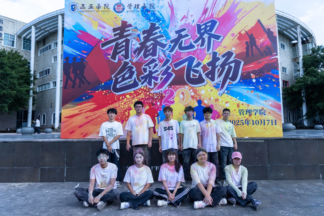 上午 9 时 40 分,首批抵达终点的同学迎来了专属的 “色彩庆典”。工作人员与同学们一同挥舞彩带、投掷彩色粉末,大家相互拥抱、欢呼雀跃,用最热烈的方式庆祝完成挑战。随后,所有参与者齐聚终点广场,在 “青春无界,色彩飞扬” 的主题背景板前合影留念,相机快门按下的瞬间,将这份充满活力与友谊的美好时刻永久定格。