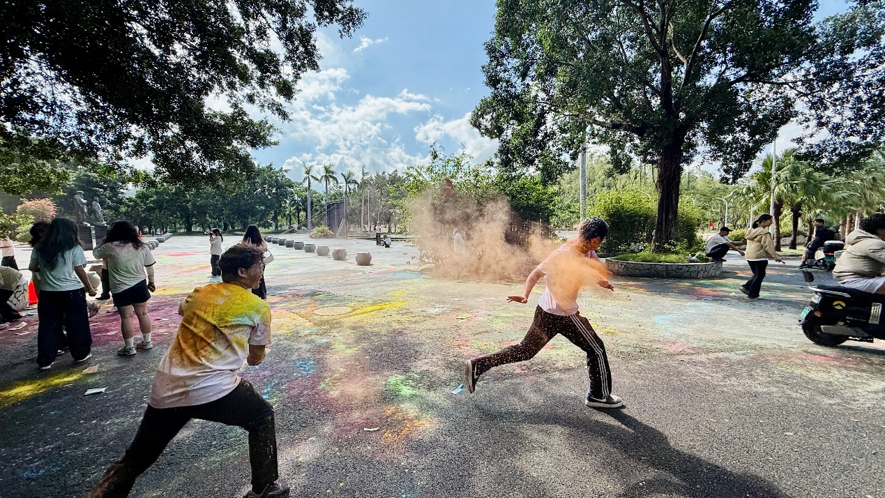 同学们纷纷表示,奔跑中被彩色粉末 “包围” 的瞬间,不仅释放了近期的学习压力,更感受到了集体活动的温暖,“看到大家一起为祖国祝福、为青春喝彩,我对‘爱国’有了更鲜活的理解。”