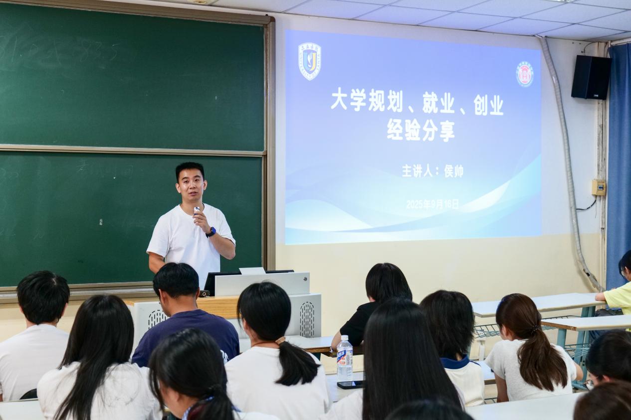 9月16日上午,物流管理专业2017届优秀校友侯帅重返校园,以自身求学、就业、创业的真实经历为蓝本,为物流管理与供应链管理专业全体2025级新生带来一场关于大学生活规划与职业发展的干货分享。