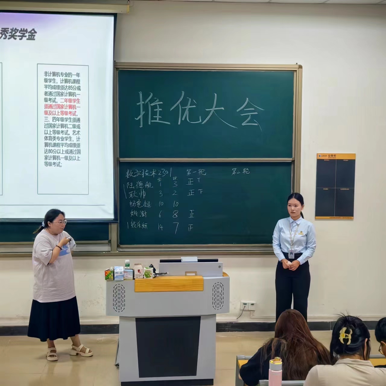 在推优大会上,思想导师李怡蒙首先介绍了推优工作的背景和重要意义,强调了推优工作对于加强党团衔接、提升党员发展质量的作用。随后,各班候选人们从思想政治、道德品行、作用发挥、执行纪律等方面进行了自我评述,分享了自己对党的认识和入党动机。在公开透明的环境下,进行投票、唱票、记票,最后选出入党积极分子。