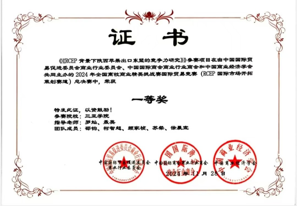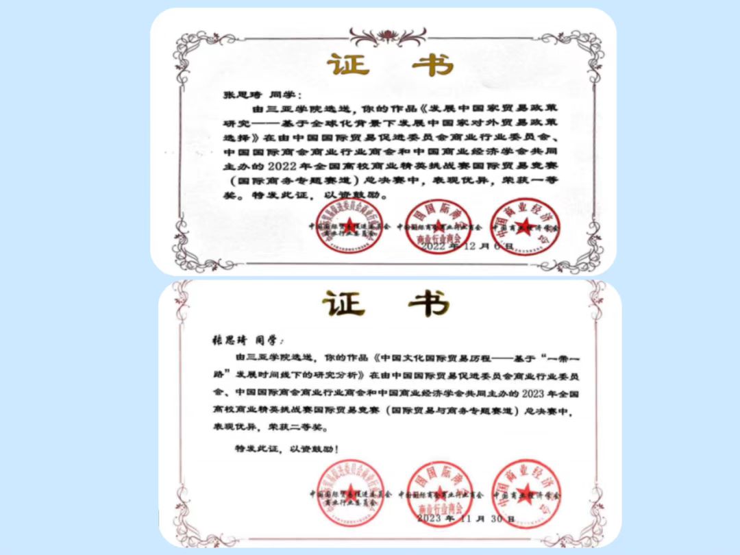 在HRM协会,你将见证一个充满活力与潜力的社团如何在学科竞赛中屡创佳绩。社团创立至今,我们的成员在全国高校商业精英挑战赛国际贸易竞赛(RCEP国际市场开拓策划赛道)总决赛中荣获一等奖、二等奖,展现了卓越的专业素养和团队协作能力。在2024年和2025年的“正大杯”第十五届全国大学生市场调查与分析大赛中,HRM协会的成员们更是大放异彩,不仅在校赛中斩获特等奖,还在海南省赛中获得二等奖、三等奖。这项赛事作为教育部A类竞赛,是全国一流的公益性专业品牌赛事,能够在全国众多高校中脱颖而出,这不仅是对成员们努力的肯定,更是HRM协会实力的象征。