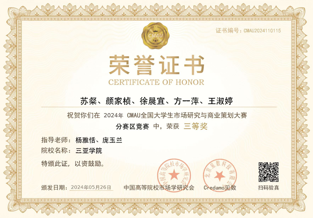 HRM协会不仅注重专业竞赛,还鼓励成员在学术研究上有所建树。第一任社长张思琦以第一作者身份发表科学研究论文,为社团的学术氛围树立了榜样。在第十九届“挑战杯”大学生课外学术科技作品竞赛中,HRM协会成员所在的团队荣获三亚学院校级三等奖,并获得了学校的推文宣传。这些成绩的取得,离不开每一位成员的努力和坚持,也离不开社团的培养和支持。