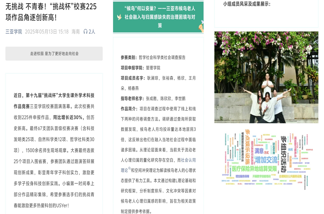 HRM协会成员所在团队荣获第十九届“挑战杯”大学生课外学术科技作品竞赛三亚学院校级三等奖并获推文宣传