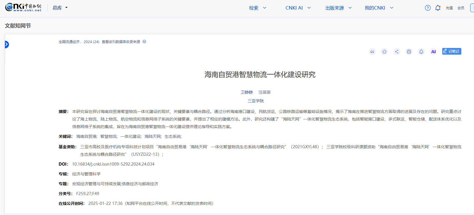 该研究成果的发表,不仅为智慧物流领域的研究者提供了新的思路,也为海南自贸港的物流体系建设和经济发展提供了重要参考。