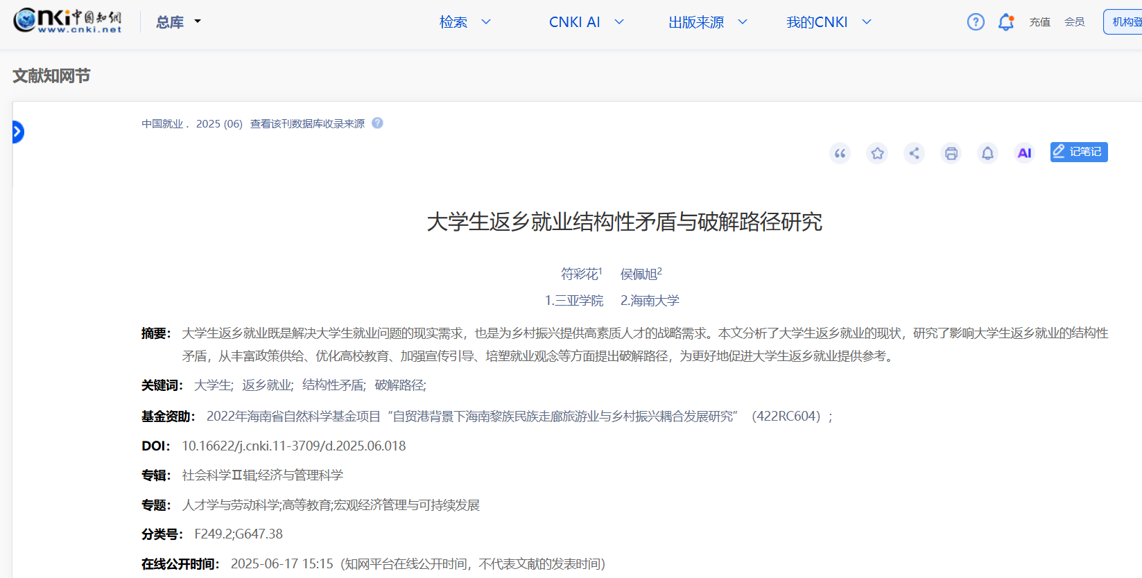 开云kaiyun体育官方网站思想导师符彩花发表论文,聚焦大学生返乡就业问题