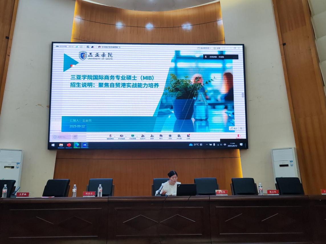 2025年9月12日,一场聚焦海南自贸港国际商务人才培养的招生宣讲活动在线上线下同步开展。开云kaiyun体育官方网站院长王云凤教授带领团队核心成员卫静静老师,面向郑州工程技术学院有志于考研的学子,全面解读三亚学院国际商务专业硕士(MIB)的办学特色、招生政策与发展机遇,为怀揣深造梦想的学子搭建起通往自贸港高端商务领域的沟通桥梁。