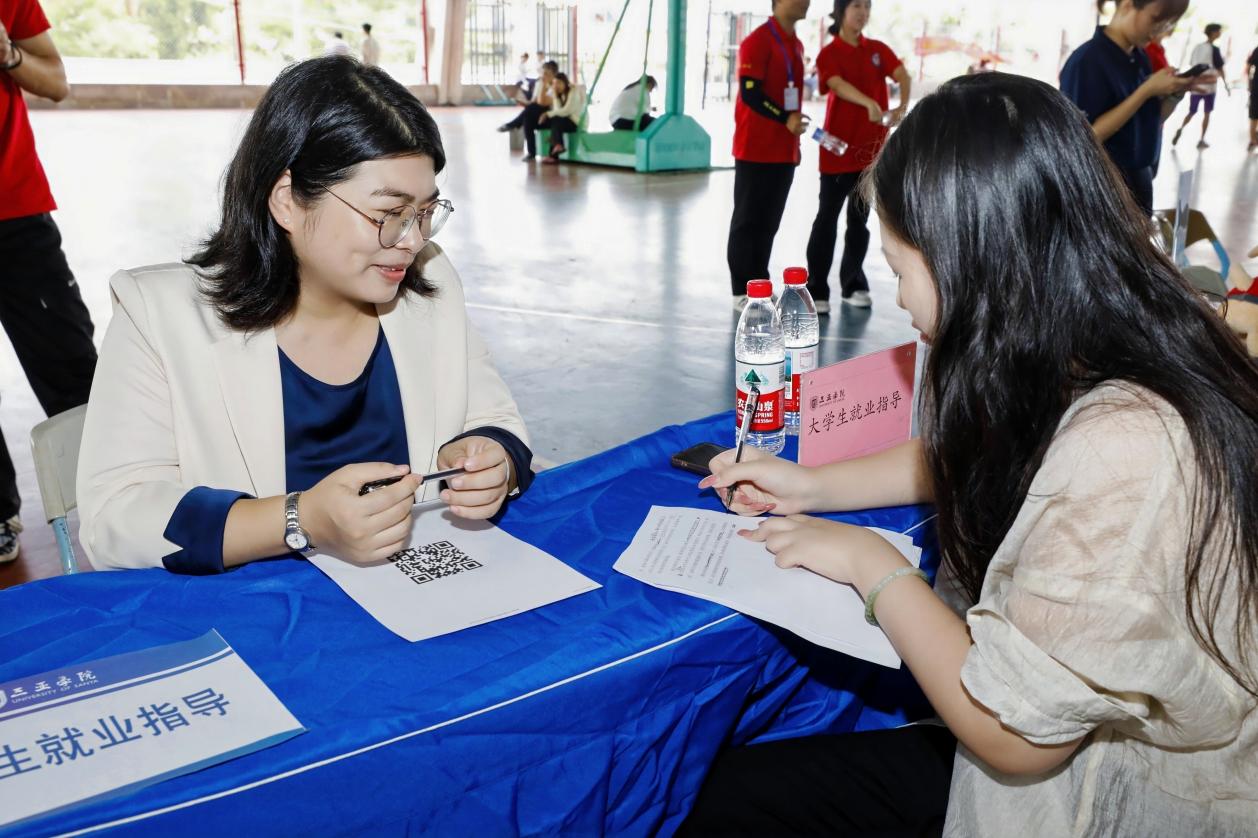 1011日,2025年“海南学子 就在海南”留才行动三亚学院秋季校园专场招聘会在风雨球场火热开展。在人头攒动的会场中,开云kaiyun体育官方网站人力资源管理专业熊爱玲老师的大学生就业指导咨询展位前始终围满了寻求帮助的毕业生,她凭借专业素养,为同学们的简历“挑刺把脉”,并给出技能提升建议,成为毕业生求职路上的“贴心引路人”。