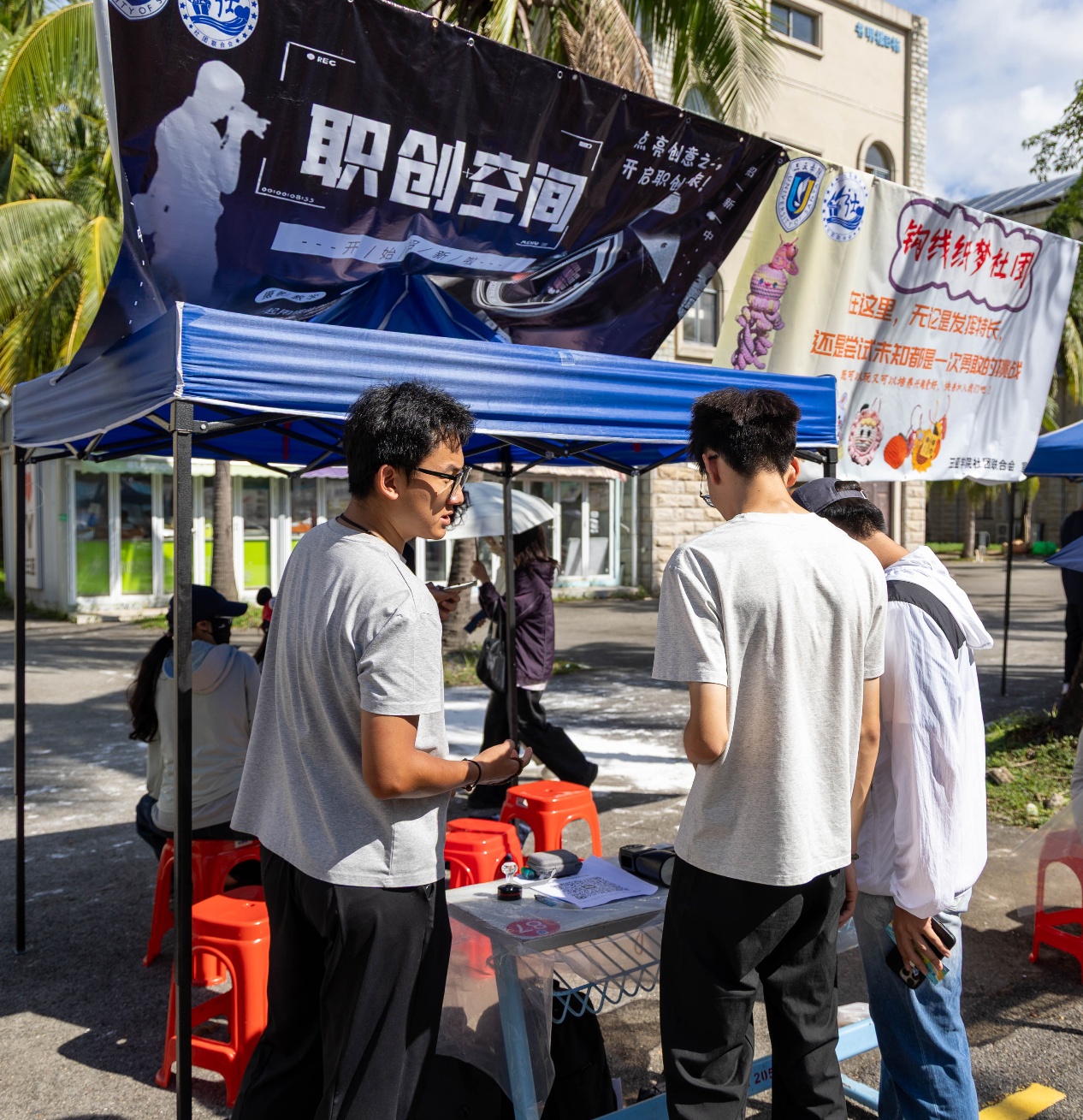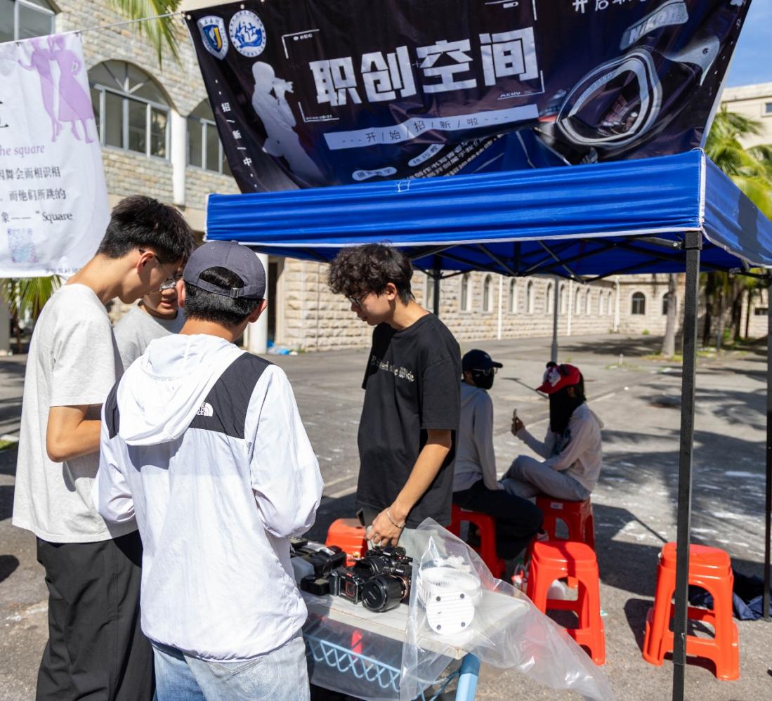 漫步于东区椰林广场,仿佛置身于一片沸腾的海洋。超过百家社团齐齐亮相,以创意、才华与激情为笔,绘出一幅绚烂夺目的青春长卷。音乐社的弹唱声、街舞团的节拍呐喊、汉服社衣袂翩跹的典雅身影、轮滑社疾驰而过的飒爽英姿……每一种声音都在诉说热爱,每一道身影皆成风景。