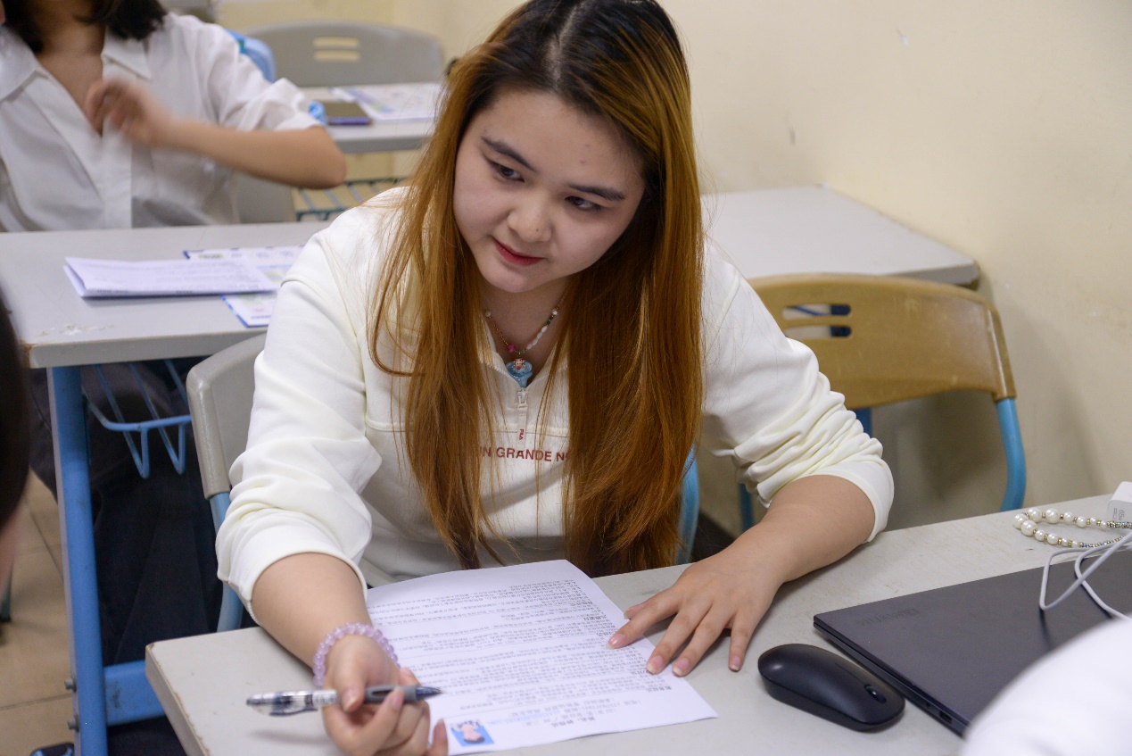 宣讲结束后,现场随即开启“一站式”面试环节。企业设置3个面试点位,毕业生们手持精心准备的简历有序排队,与HR面对面沟通岗位适配度。