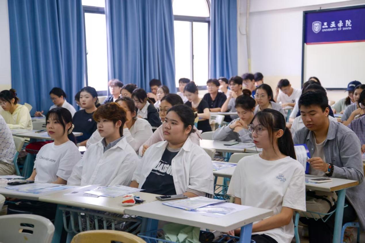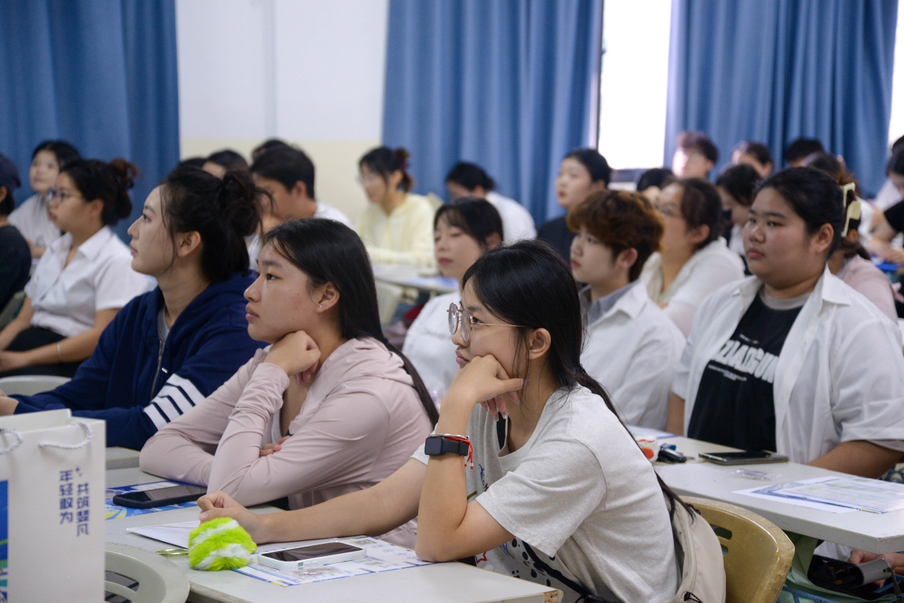 FILA海南办事处负责人李越建先生的分享则为学子打开了行业视野。他从安踏集团“单聚焦、多品牌、全球化”的发展战略切入,追溯FILA1911年创立以来的百年历程,重点解读品牌“高端运动时尚”的市场定位,以及在海南自贸港政策下的区域业务布局。他表示,海南是FILA华南区域的重点市场,未来3年计划新增若干家门店,急需新鲜血液加入。他用具体数据展现品牌发展潜力,让学子看到清晰的职业成长空间。